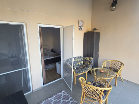 Baie comună accesibilă din terasa comună, cu vedere către Dunăre.