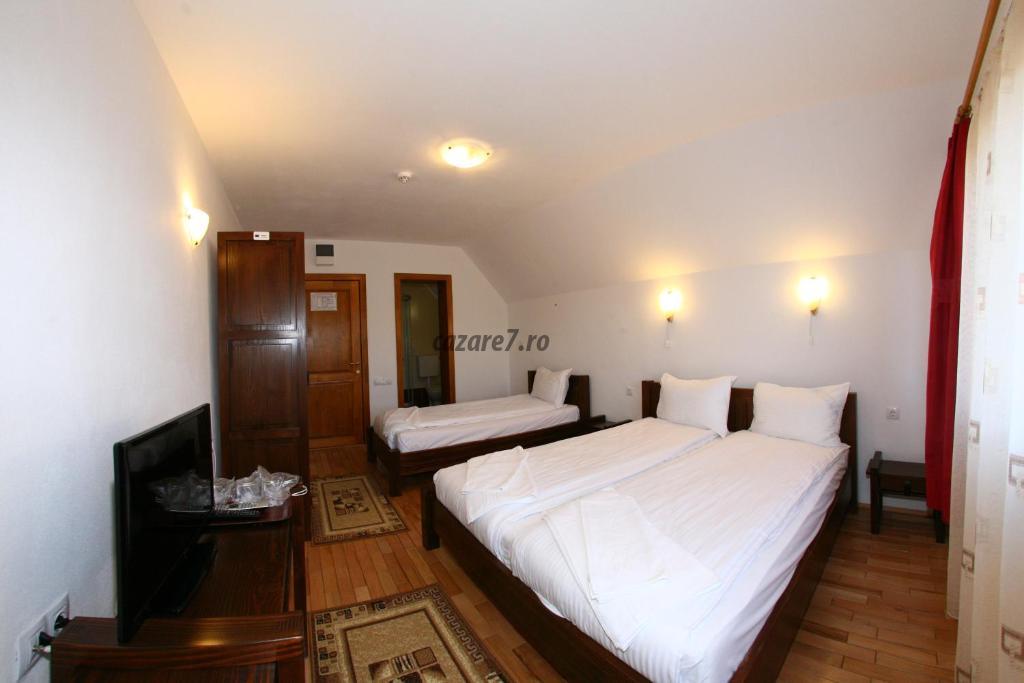 Pensiunea dispune de 12 camere duble cu mobiler din lemn masiv, cu baie proprie, TV prin satelit, incalzire si apa calda in permanenta.