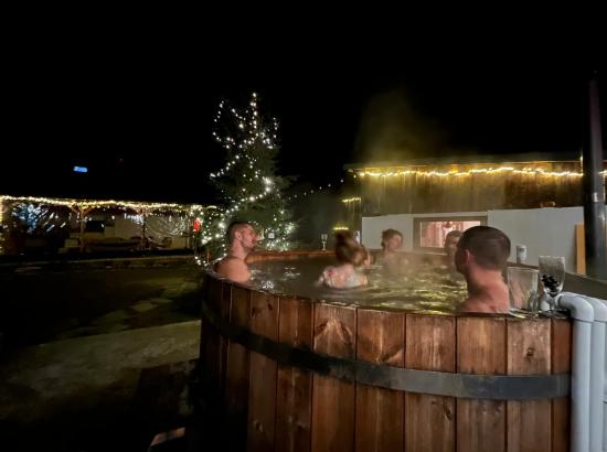 Relaxare în Ciubăr: Răsfață-te în ciubărul nostru de 12 persoane, un loc perfect pentru relaxare sub cerul înstelat.