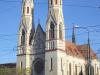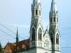 Constructia, in stil neogotic, a fost realizata de arhitectul Karl Salkovics si aminteste de biserica Votivkirche din Viena.